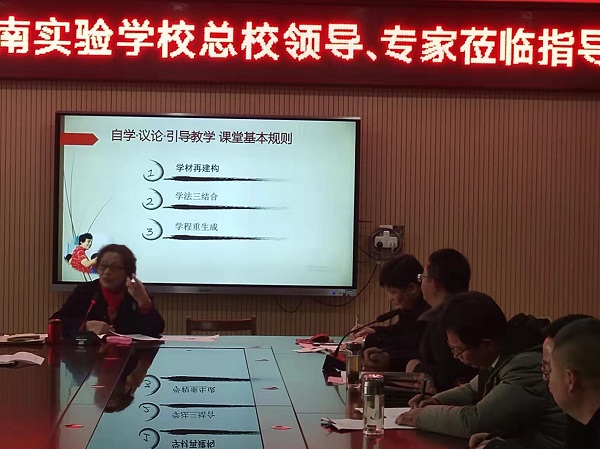 下午第三节课,所有听课老师集中在白甸初中综合楼二楼会议室进行了评课活动,石小江研训员主持评课活动。李庾南老师作了《聚焦课堂,践行”三学”,提升育人》的专题讲座,再次明确了“自学·议论·引导”教学法的三个课堂基本规则:学材再建构; 学法三结合 ;学程重生成。